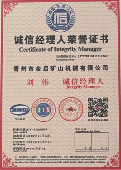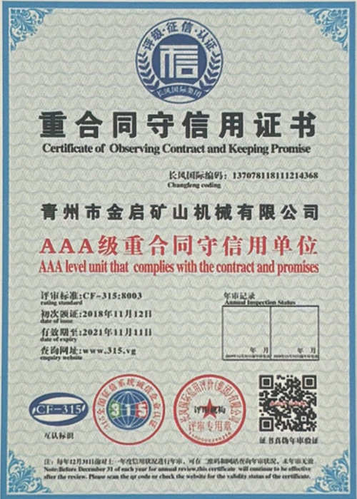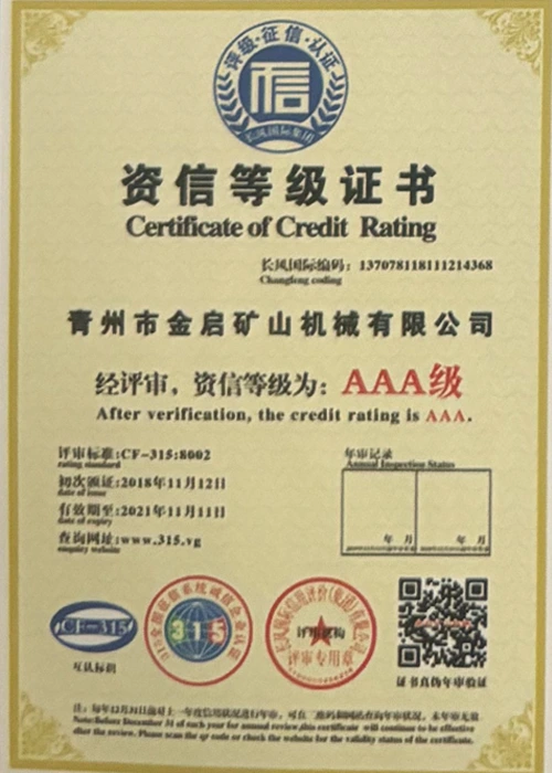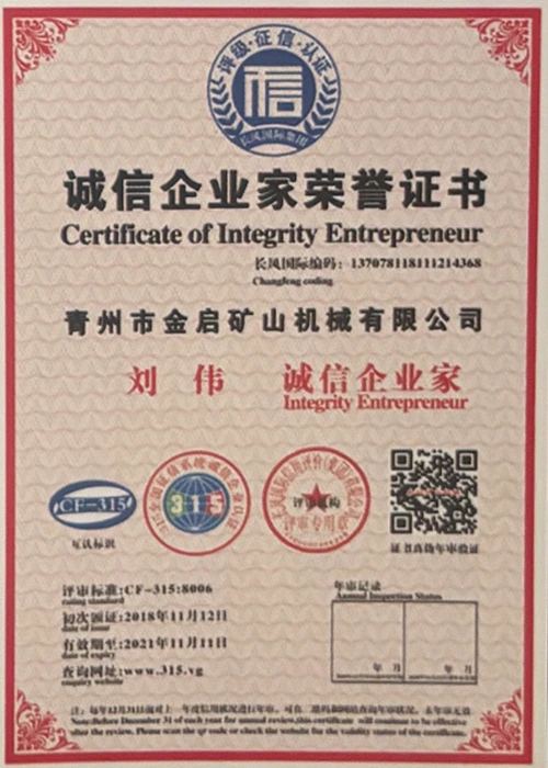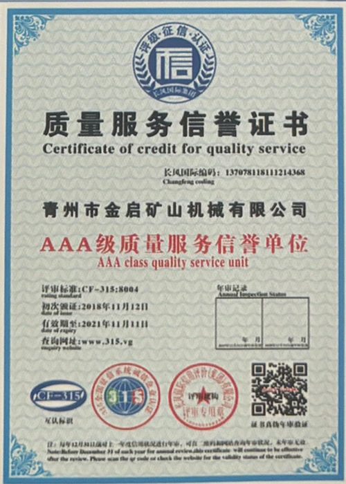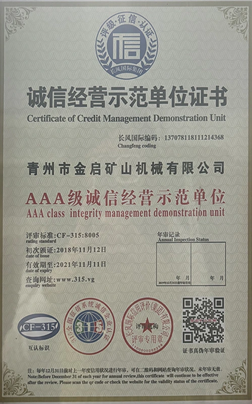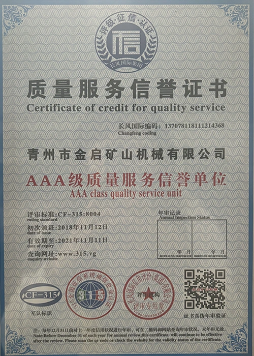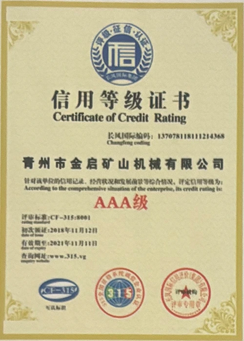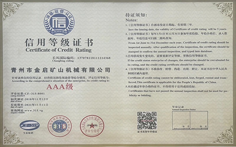 업계에서 다년간의 깊이 있는 경험을 바탕으로 엄격한 품질 관리와 지속적인 기술 혁신을 바탕으로 회사는 ISO 품질 관리 시스템 인증, 광업 제품 안전 인증은 물론 장비 구조 최적화 및 에너지 절약 기술 업그레이드를 위한 다수의 발명 특허 및 실용 신안 특허를 포함하여 수많은 권위 있는 자격, 인증 및 특허 인증서를 획득하여 심오한 기술력과 규정 준수 생산 보증을 입증했습니다.
